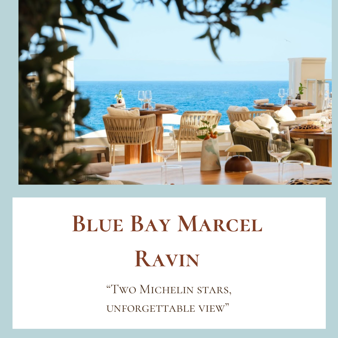 Blue Bay by Marcel Ravin is a true expression of cultural fusion, sustainability, and artistic excellence. With its two Michelin stars, breathtaking sea views, and a menu that reflects the chef’s soul and story, it offers one of the most unforgettable dining experiences in Monaco.